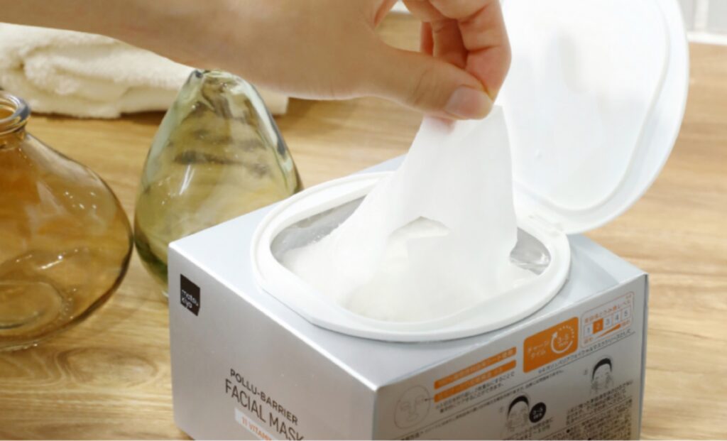 - 洗顔後に「ポリュバリア フェイシャルマスク 11ビタミンミックス」を1枚取り出し顔に広げてビタミンをチャージします。もし顔に広げたときにピリピリとするような刺激があったり肌に赤みがでたときは、すぐにはがして肌負担の少ない敏感肌用などの化粧水と乳液でスキンケアをしましょう。