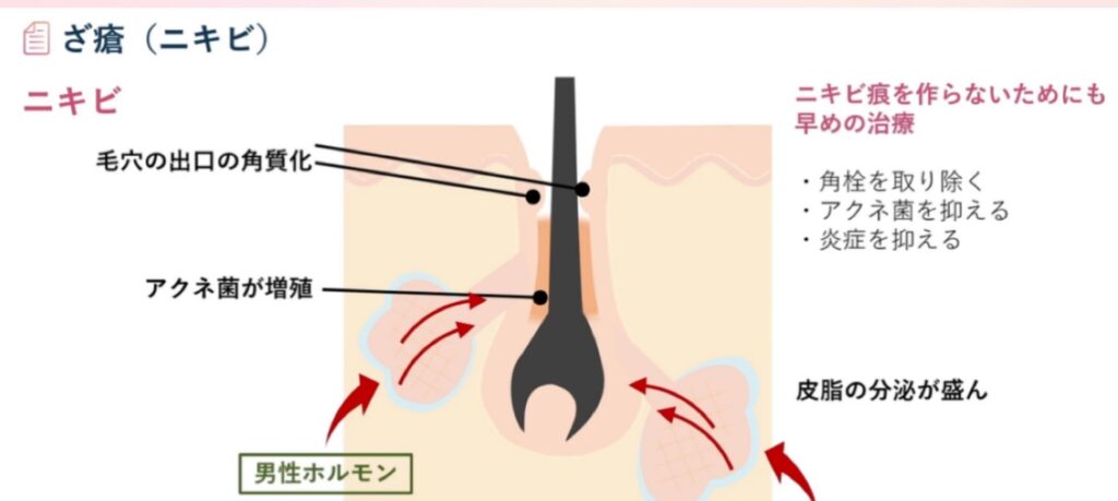 皮脂が多すぎると、毛穴が詰まりやすくなり、ニキビの原因菌が増えやすい環境になります。